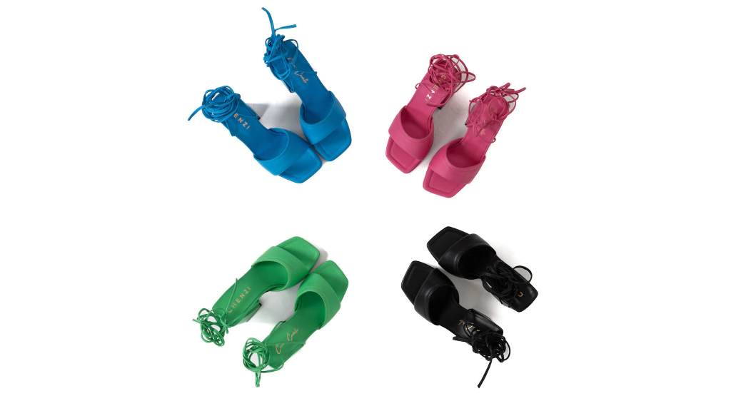 Zapato de cuero fucsia con tiras regulables. Altura de taco aproximada 8 cm.
